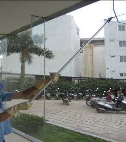 - Làm sạch kính ngoài tòa nhà