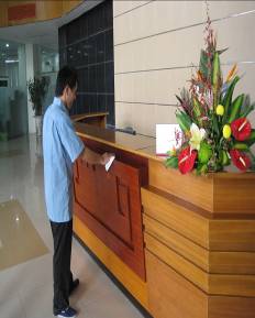 - Lau bụi và làm sạch quầy lễ tân